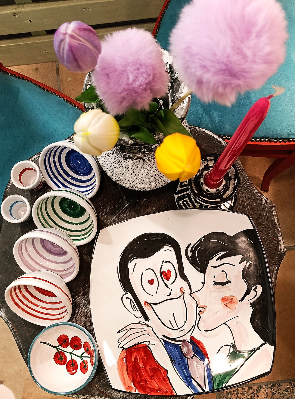 Sottopiatto maiolica: ci sono sguardi... +Coppetta tris